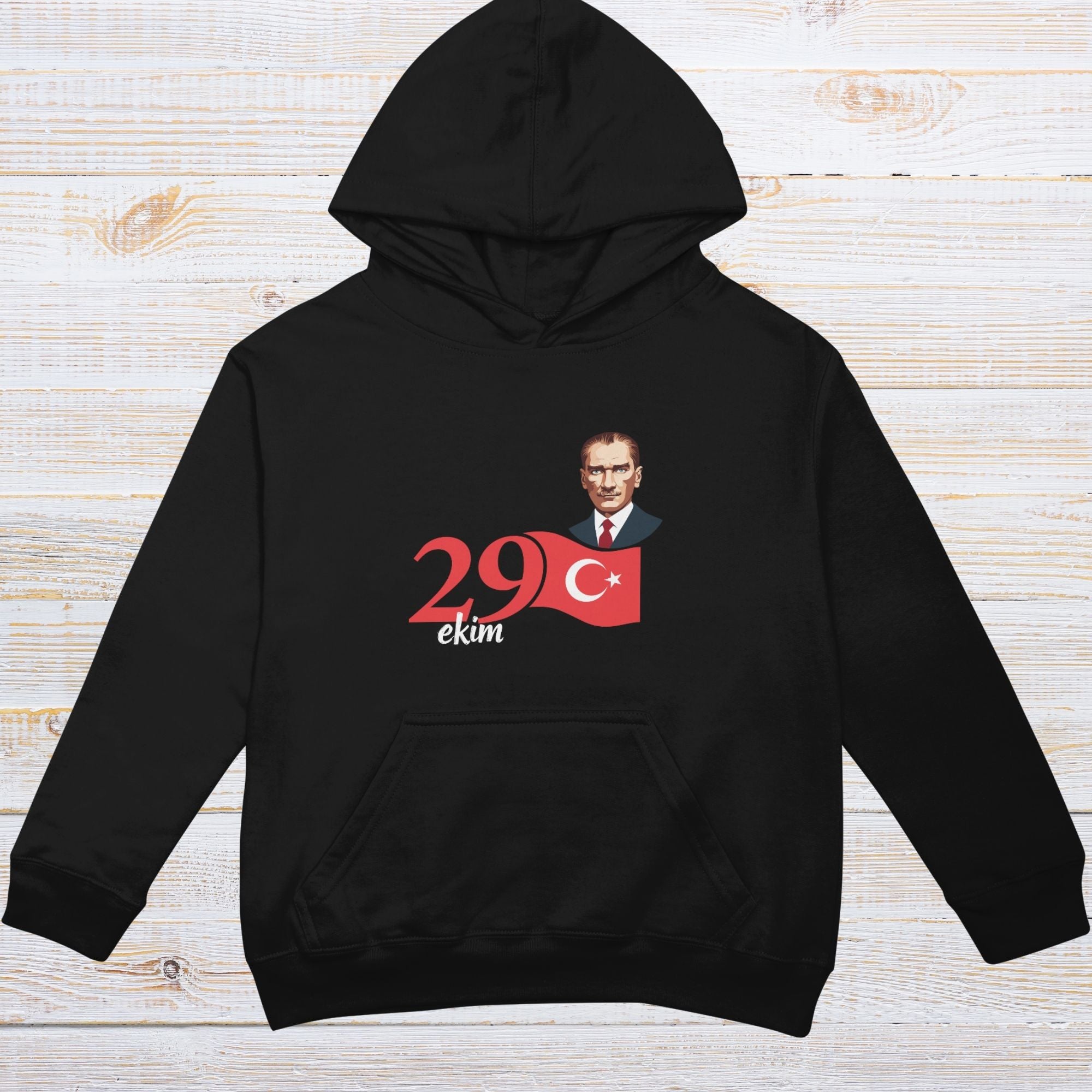 Cumhuriyetimizin gururunu ve Atatürk’ün mirasını onurlandırmak için tasarlanan bu özel hoodie, “29 Ekim” yazısı, Türk bayrağı ve Atatürk portresiyle birleşen anlamlı bir tasarıma sahiptir. Soğuk günlerde sıcak tutarken, aynı zamanda milli bir duruş sergilemenizi sağlar.